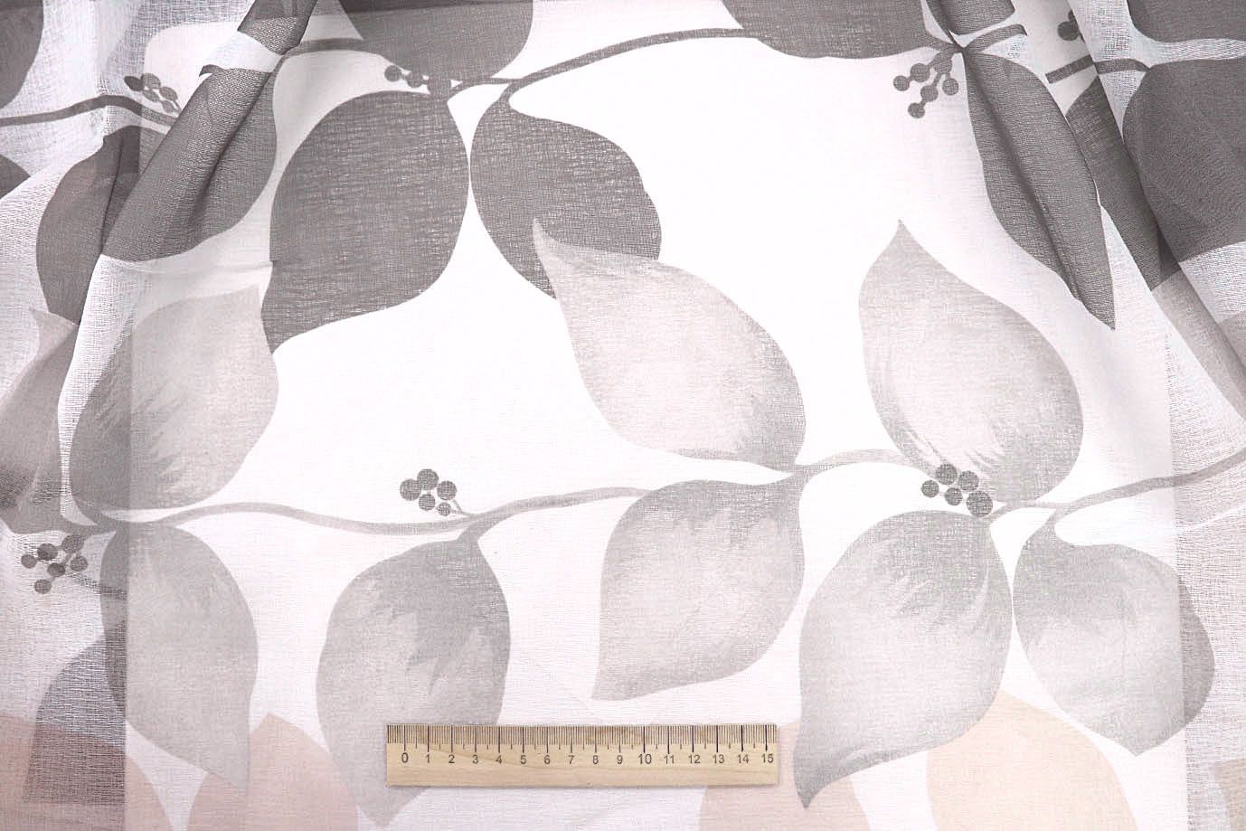 —Тюль принт/листья серо-бежевые WBC23/C#8B 30 пог/м.