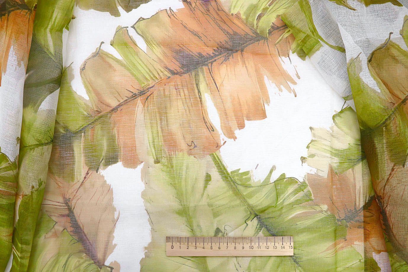 Тюль принт/листья зелено-оранжевые WBC23/C#15B 30 пог/м.