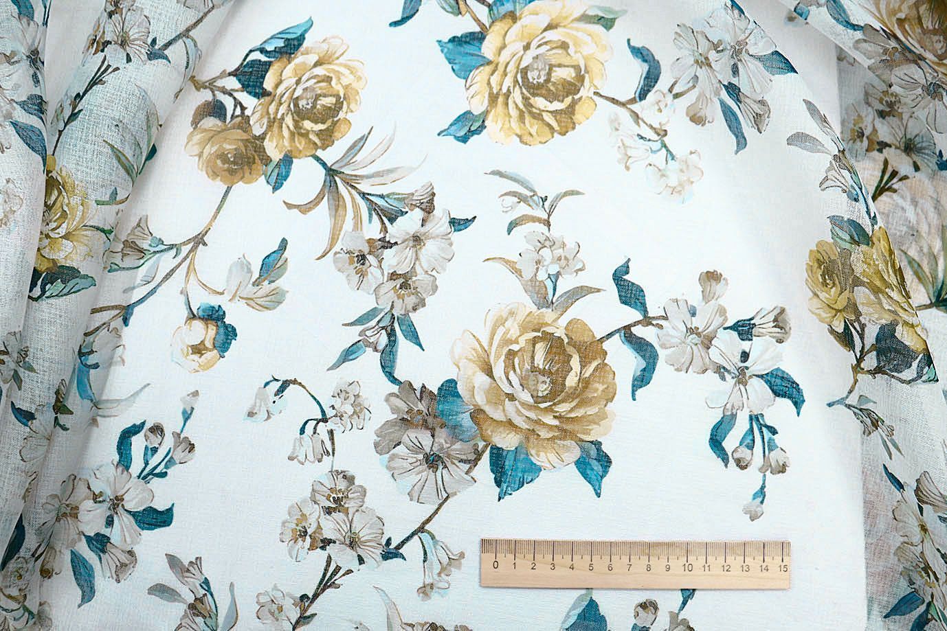 Тюль принт/цветы желто-синие WBC23/C#7B