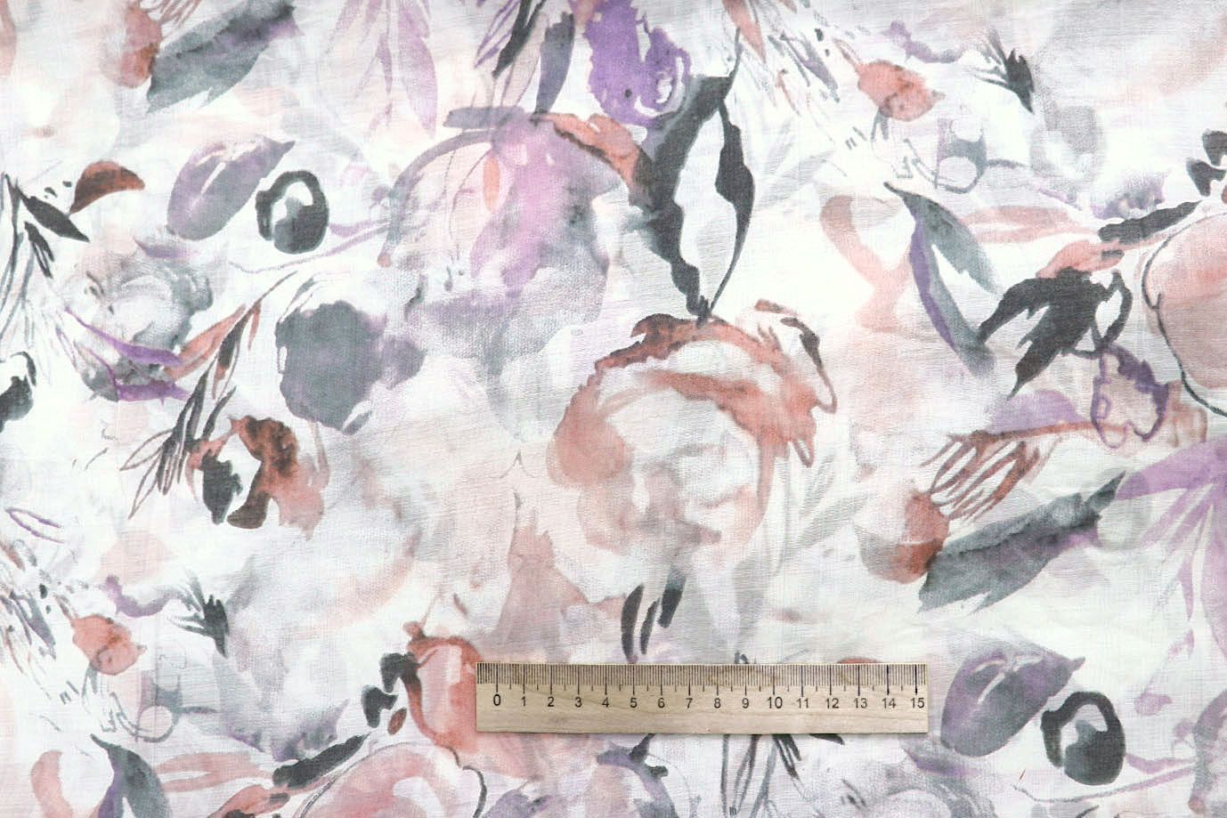 —Шелк TENCEL принт/цветы красно-серые на белом 4225-PY/D#5/C#2 32 пог/м.