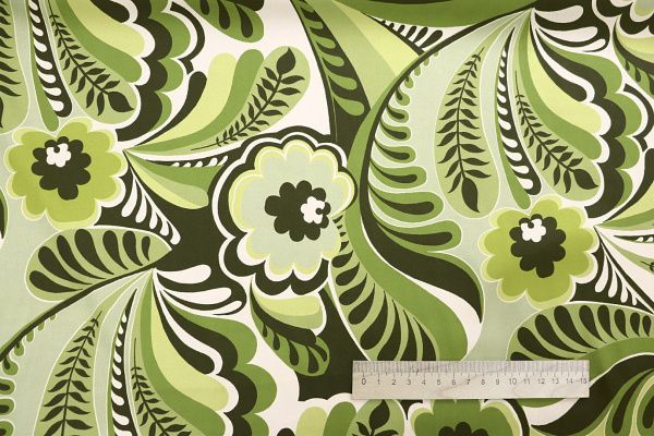 Шелк "Армани" принт/листья хаки на салатовом SL-2881/D#2/C#5 25 пог/м.