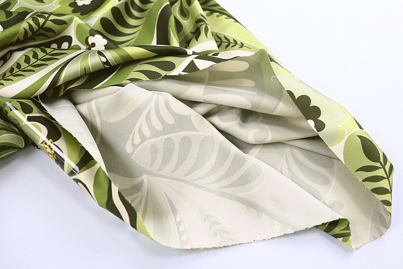 Шелк "Армани" принт/листья зеленые на светло-зеленом SL-2881/D#2/C#2