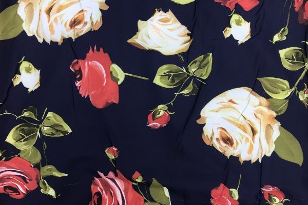 Шелк "Армани" принт/цветы бело-розовые на темно-синем 2243-PY/D#2/C#1 25 пог/м.