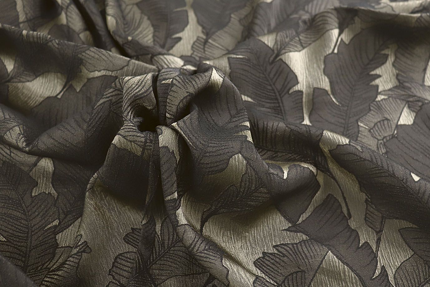 —Шелк жаккард/листья серые на болотном 4029-PY/D#3/C#2 (12233) 37 пог/м.