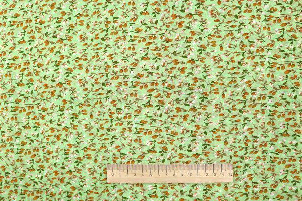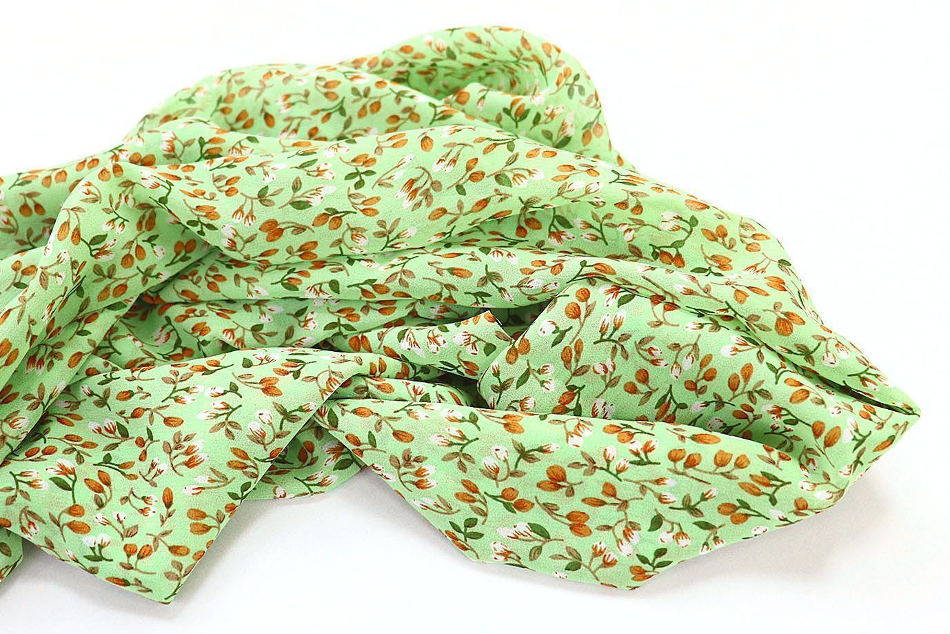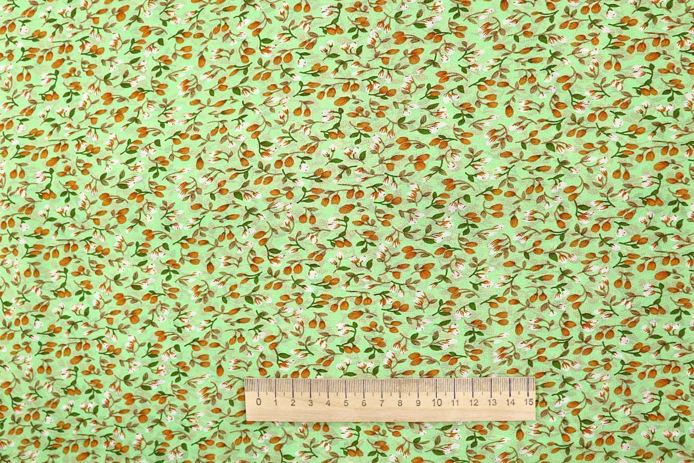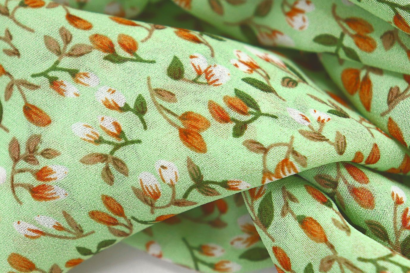 Шифон принт/цветы оранжево-белые на светло-зеленом 3707-PY/D#11/C#1 36 пог/м.