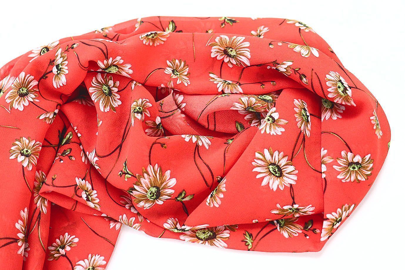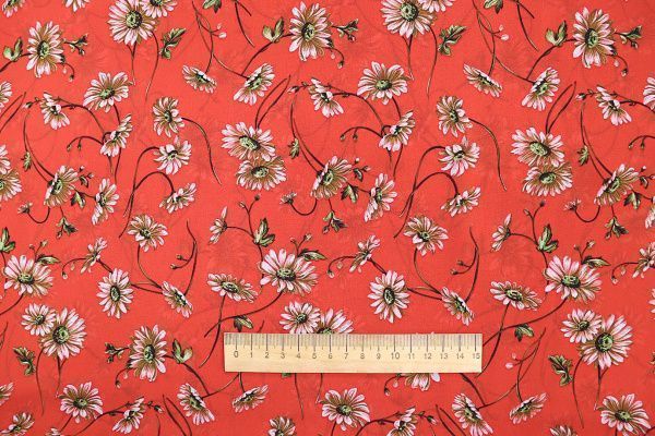 Шифон принт/цветы серо-белые на красном 3707-PY/D#56/C#2 36 пог/м.