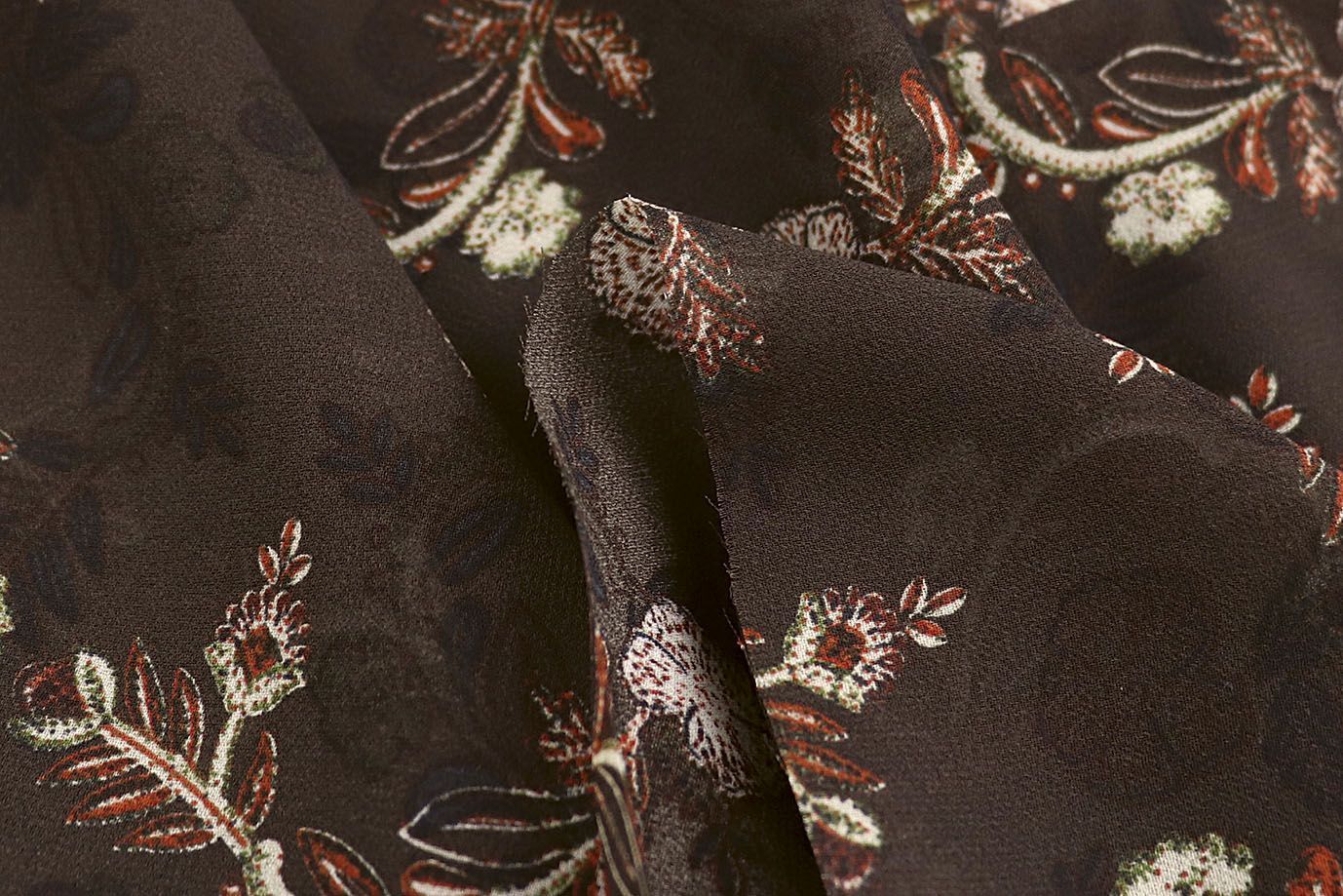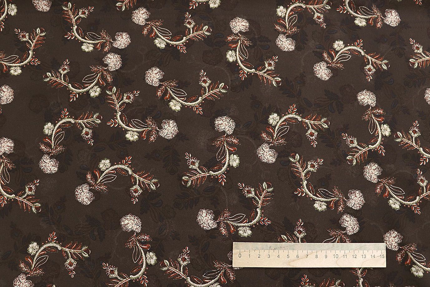 Шифон принт/цветы бежево-красные на коричневом 4247-PY/D#3/C#1 36 пог/м.