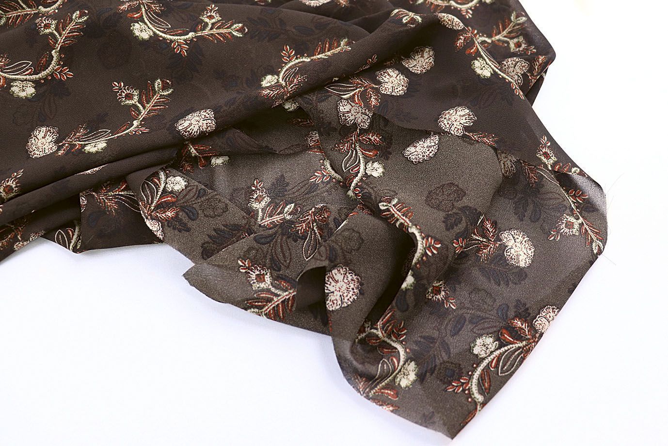 Шифон принт/цветы бежево-красные на коричневом 4247-PY/D#3/C#1