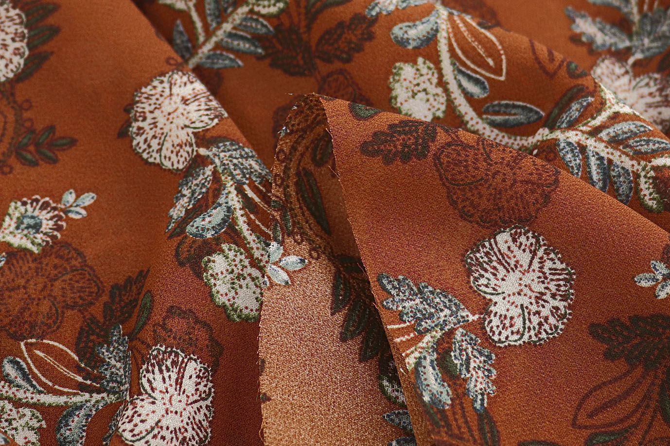 —Шифон принт/цветы бежево-зеленые на горчичном 4247-PY/D#3/C#2 36 пог/м.