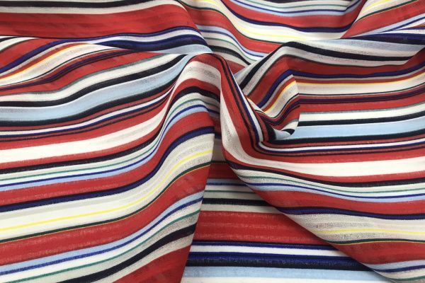 —Шифон креп принт/полоска разноцветная на красном 2115/D#5/C#1 (3166) 25 пог/м.