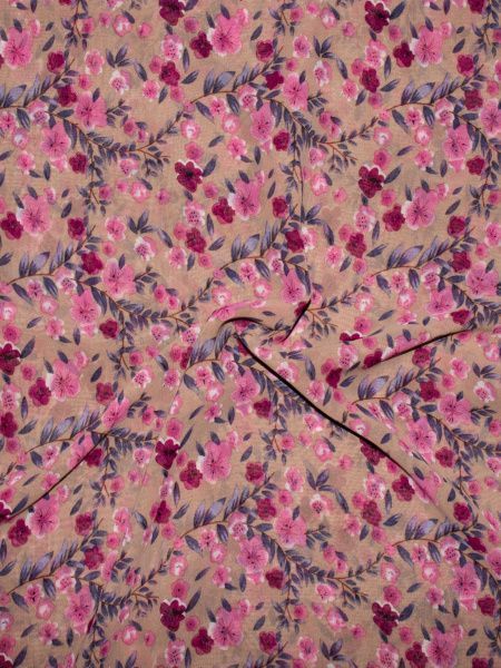 Шифон принт/цветы розово-бордовые на бежевом 2687/D#7/C#3 (10403)