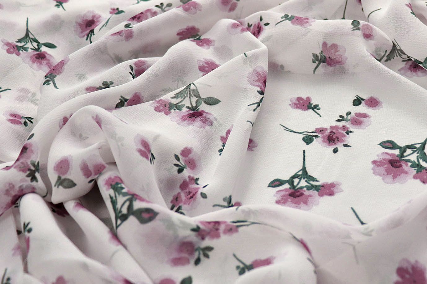 Шифон принт/цветы сиреневые на белом 2866-20-PY/D#1/C#3 (10575) 25 пог/м.