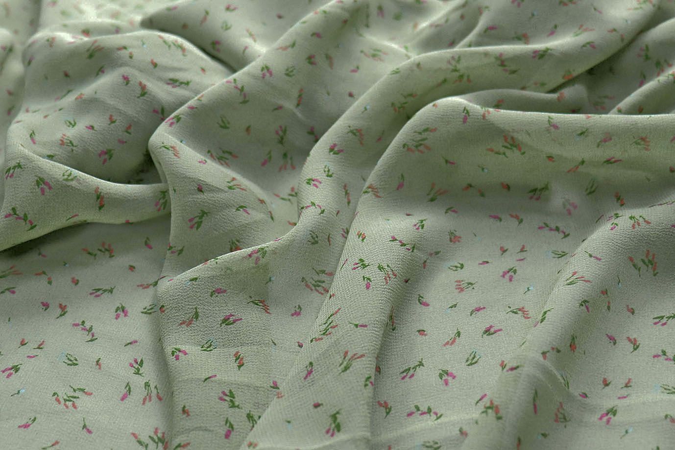 —Шифон принт/цветы розовые на светло-зеленом 2866-20-PY/D#5/C#8 25 пог/м.