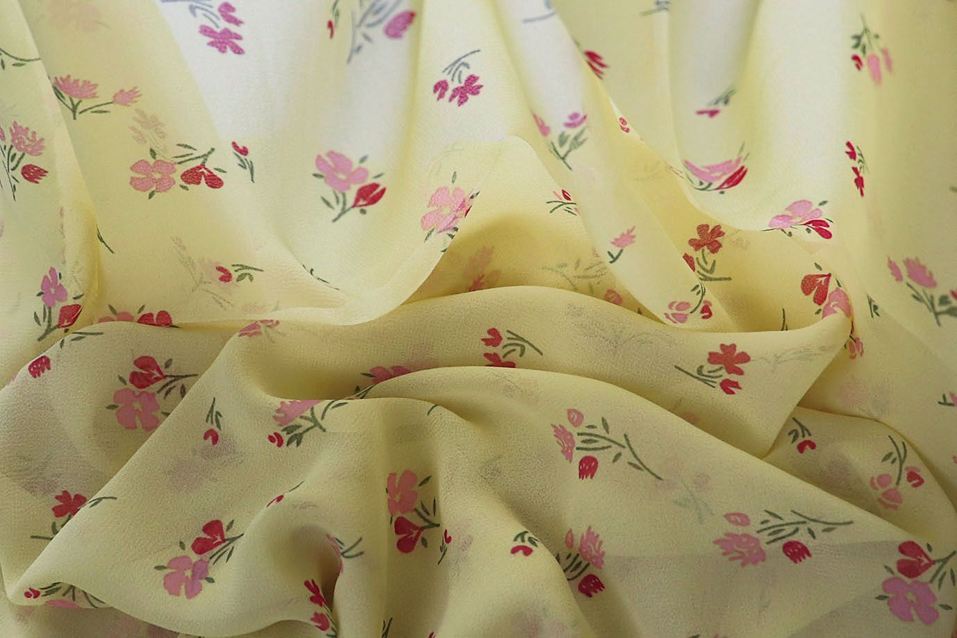 Шифон принт/цветы красно-розовые на желтом 2866-20-PY/D#6/C#6 25 пог/м.