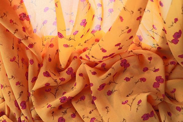 Шифон принт/цветы розовые на желто-оранжевом 2866-20-PY/D#7/C#2 25 пог/м.