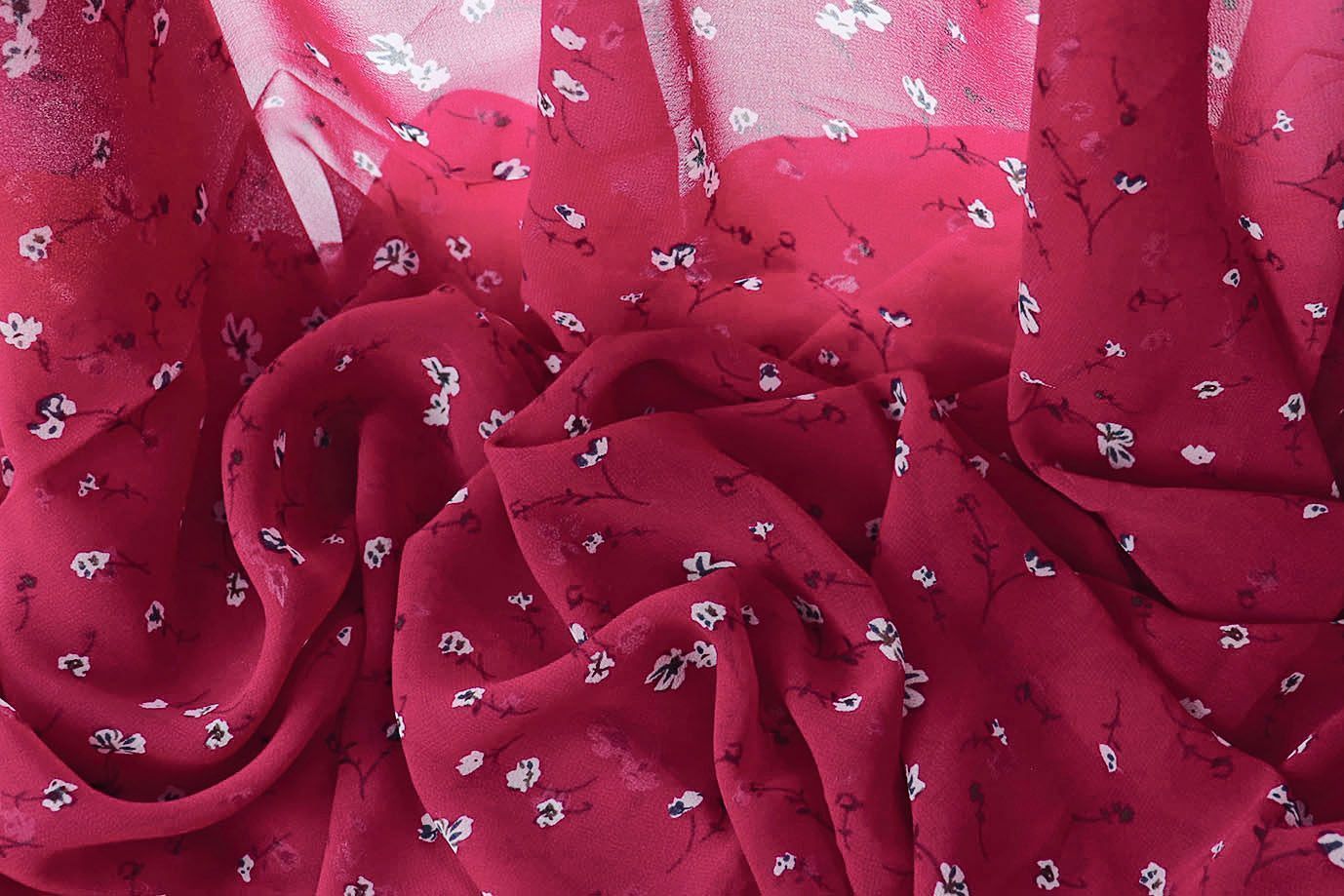 Шифон принт/цветы белые на рубиновом 2866-20-PY/D#7/C#3 25 пог/м.