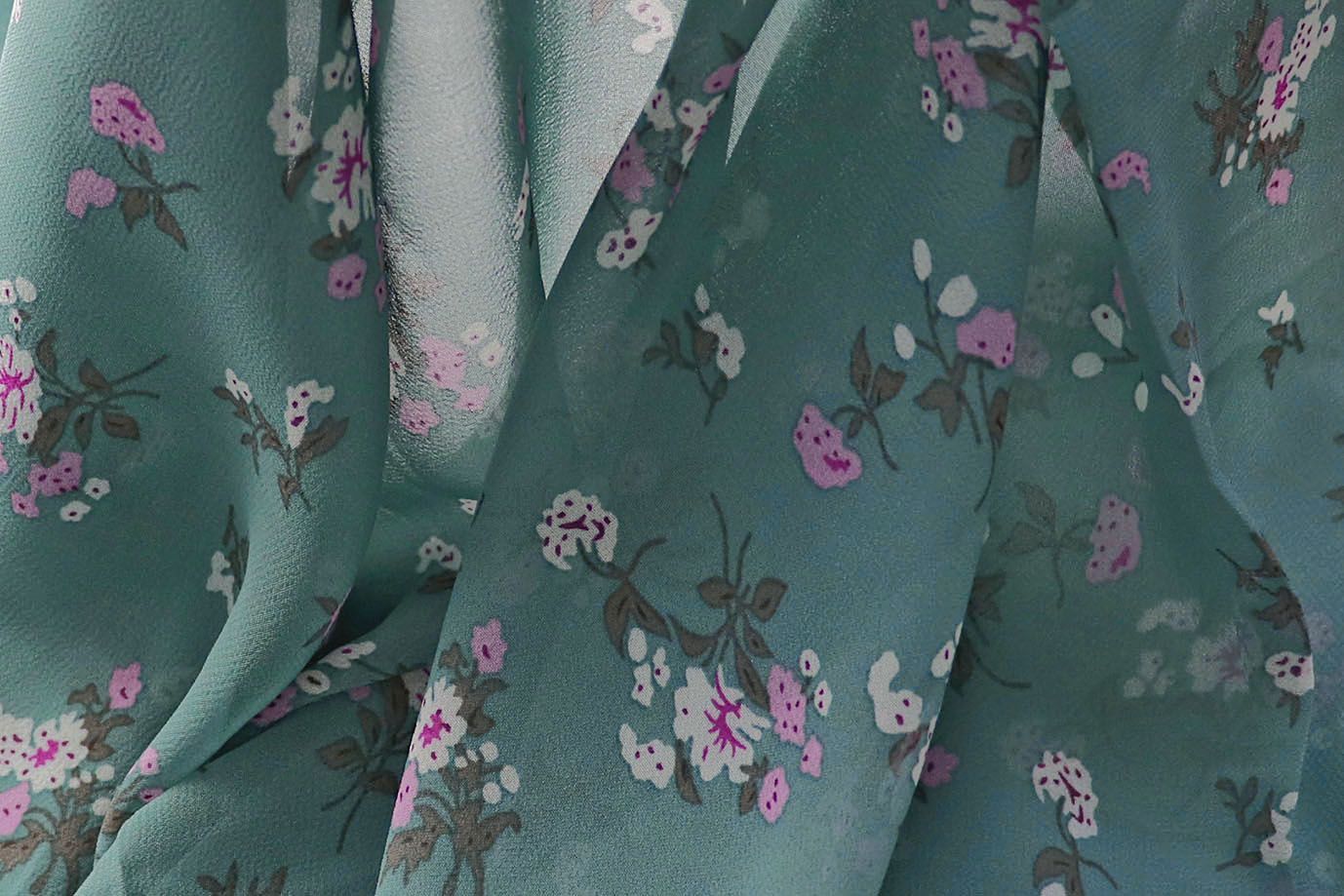 Шифон принт/цветы бело-розовые на мятном 2866-20-PY/D#10/C#6 25 пог/м.