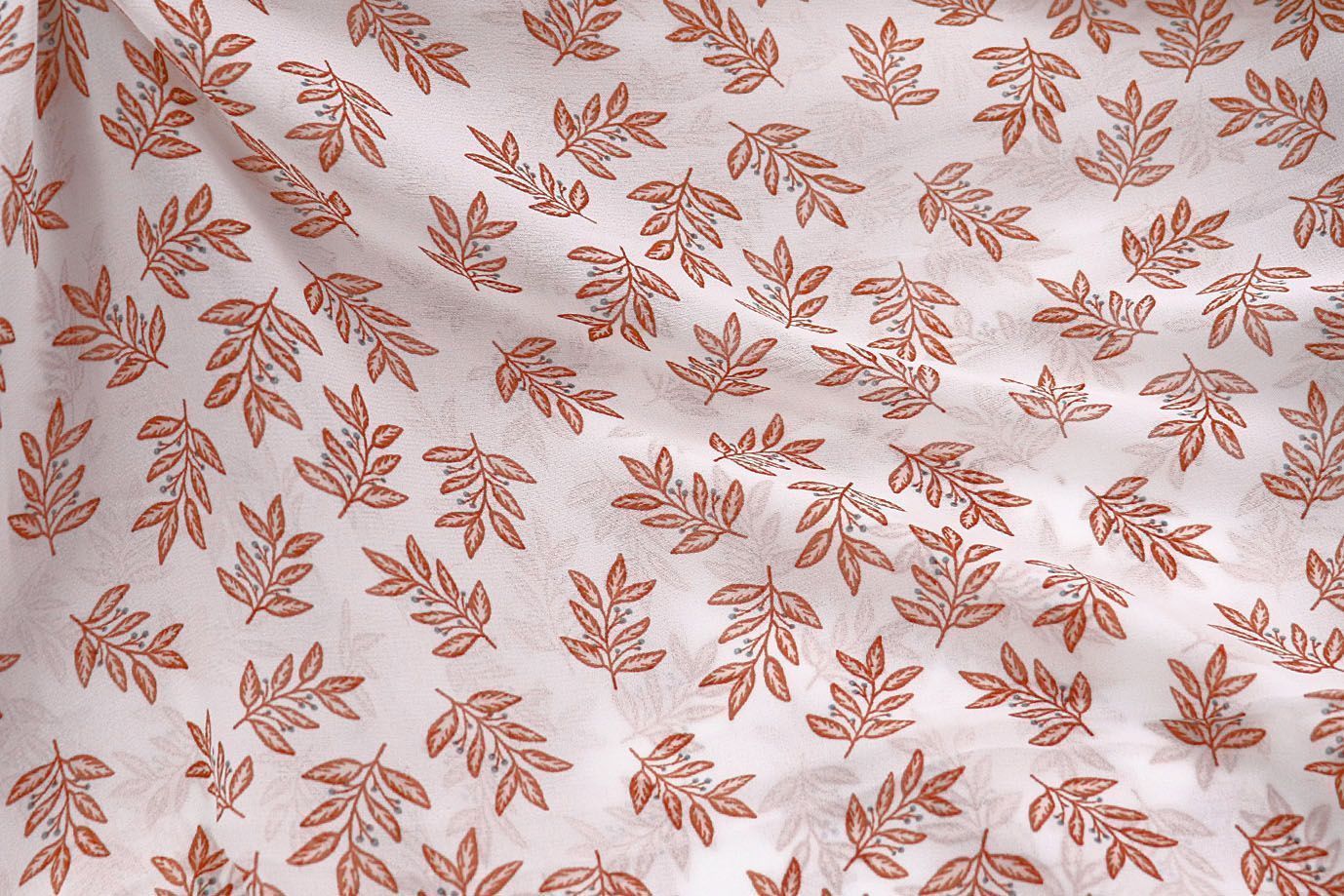 Шифон принт/листья оранжевые на белом 2883-20-PY/D#9/C#1 25 пог/м.