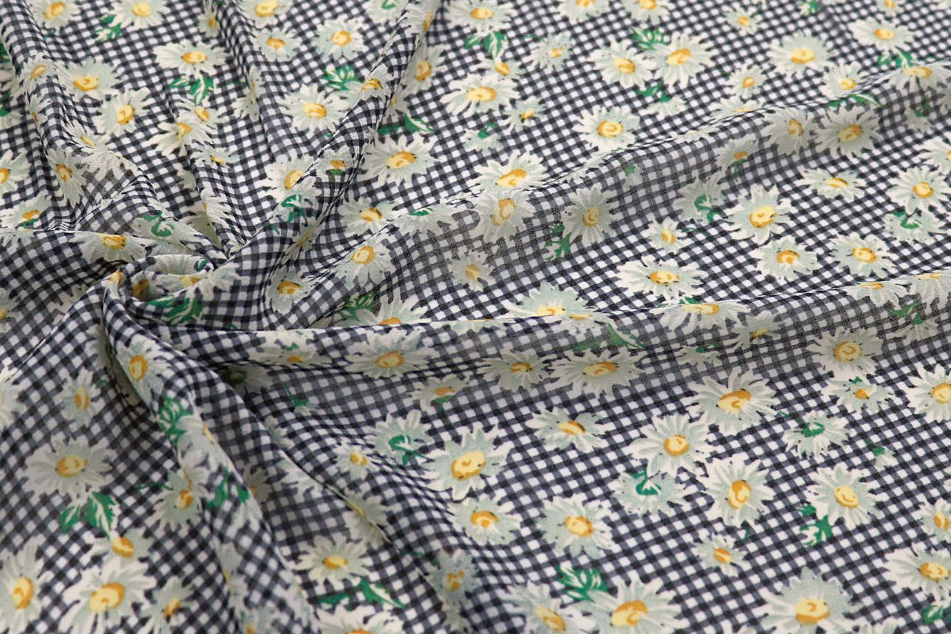 —Шифон принт/цветы белые на клетке темно-синей 2923-20-PY/D#3/C#1 25 пог/м.