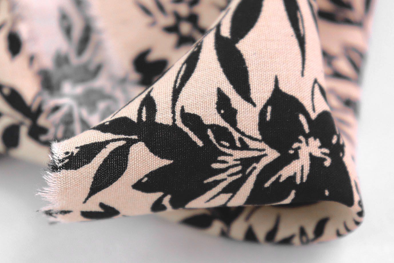 Штапель принт/цветы черные на персиковом 1374-PY/D#10/C#5