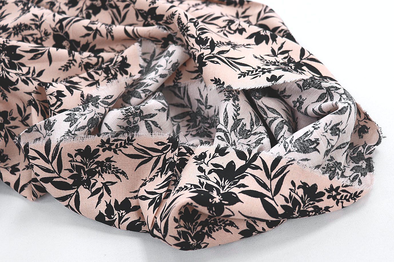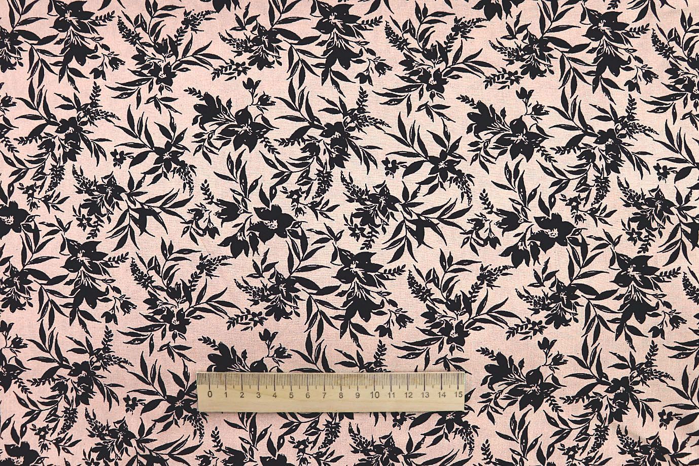 Штапель принт/цветы черные на персиковом 1374-PY/D#10/C#5 35 пог/м.