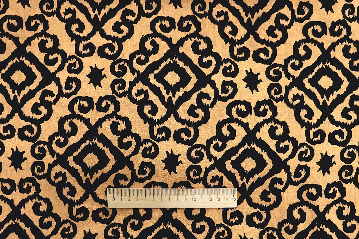 Штапель принт/узор черный на оранжевом 1374-PY/D#31/C#3 35 пог/м.