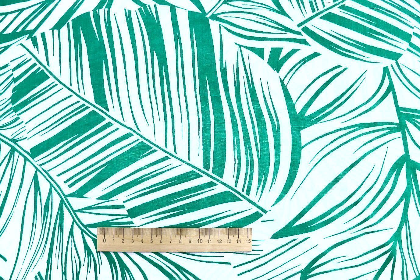 Штапель принт/листья зеленые на белом 1374-PY/D#20/C#2