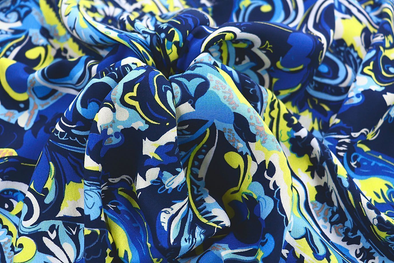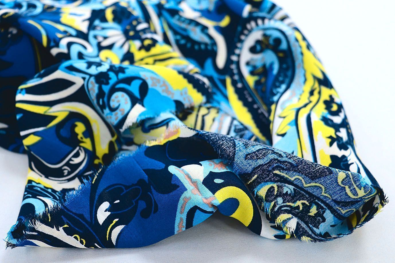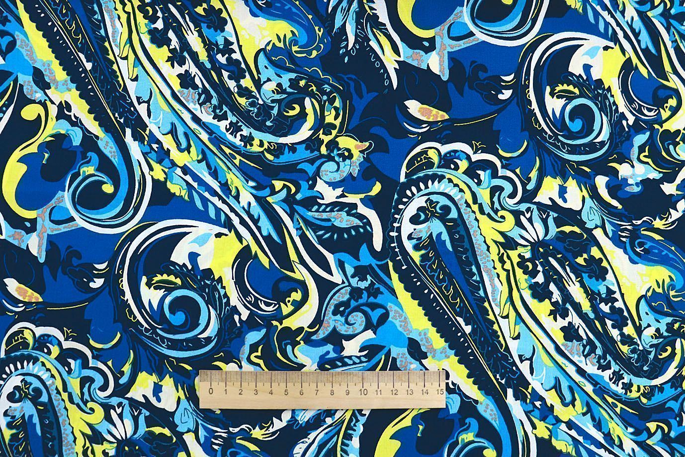 —Штапель принт/узор желто-голубой на синем 1374-PY/D#2/C#4 35 пог/м.