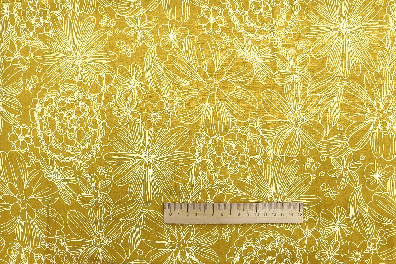 Штапель принт/цветы белые на горчичном 1374-PY/D#25/C#5