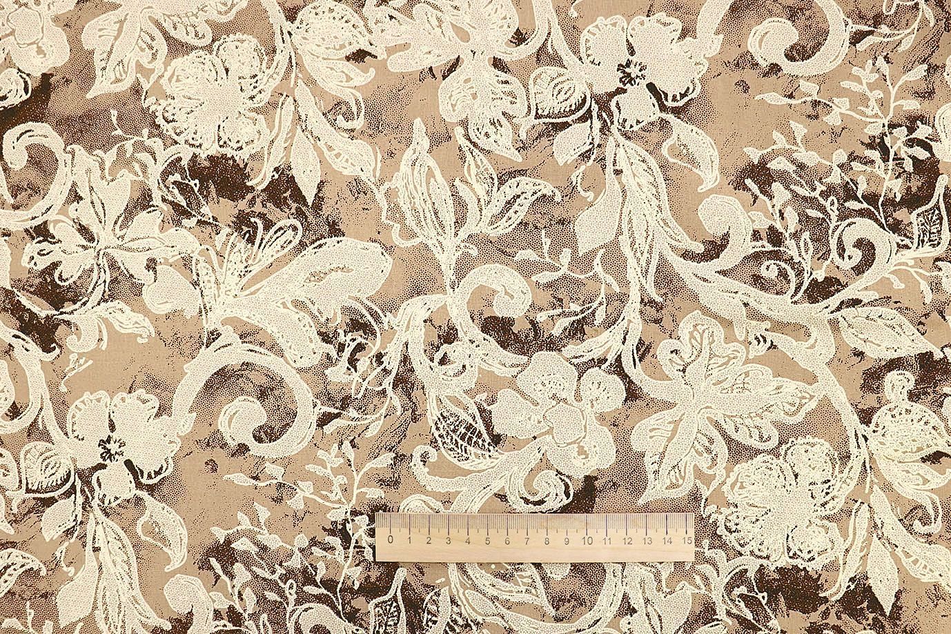 Штапель принт/цветы молочные на бежевом 3840-PY/D#3565/C#1 25 пог/м.