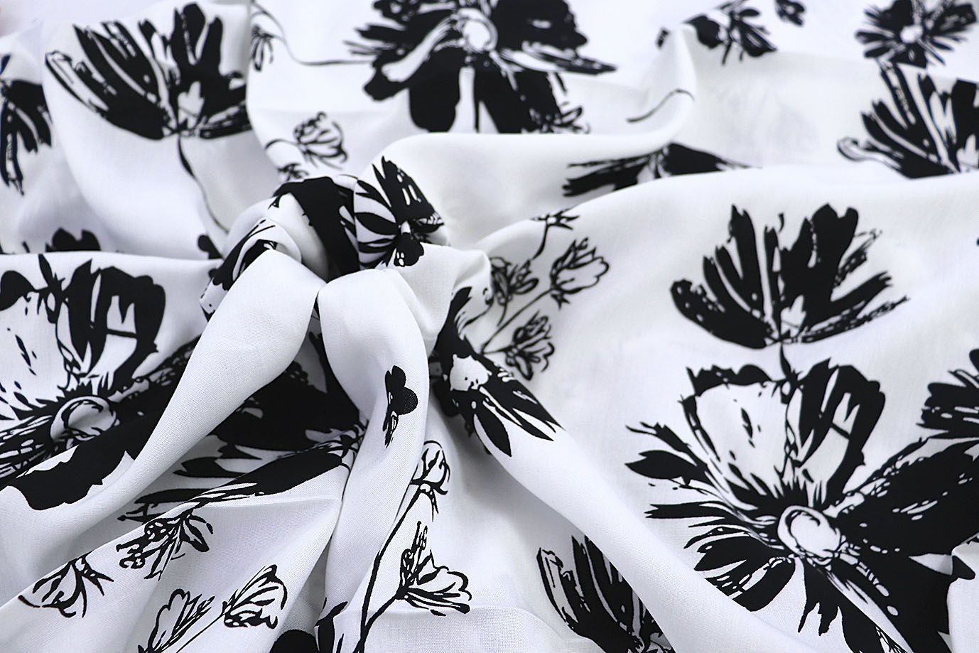 Штапель принт/цветы черные на белом 1382-PY/D#2/C#7