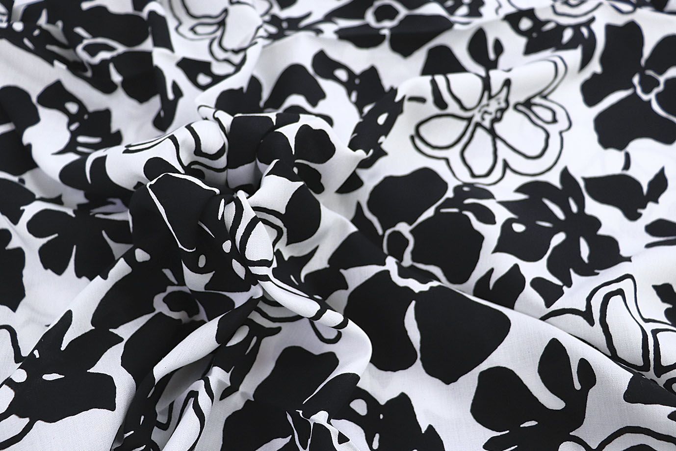 —Штапель принт/цветы черные на белом 1382-PY/D#13/C#6 55 пог/м.