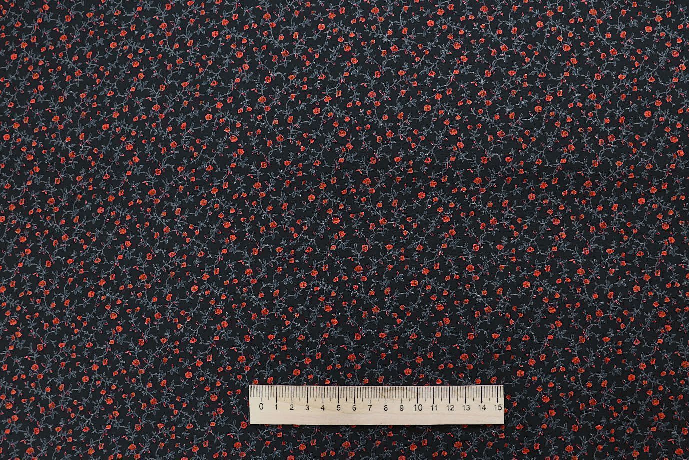Штапель принт/цветы красные на черном 1443-PY/D#7/C#1 33 пог/м.