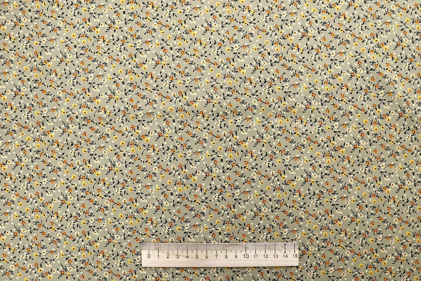 Штапель принт/цветы желто-оранжевые на песочном 1443-PY/D#9/C#9