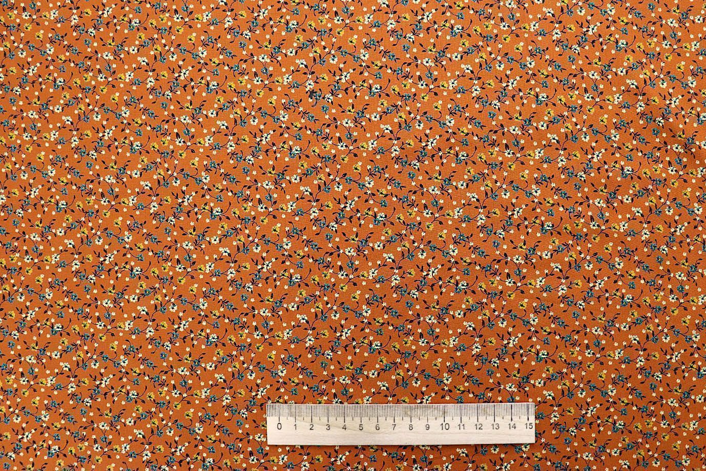 Штапель принт/цветы оранжево-коричневые на зеленом 1443-PY/D#9/C#7