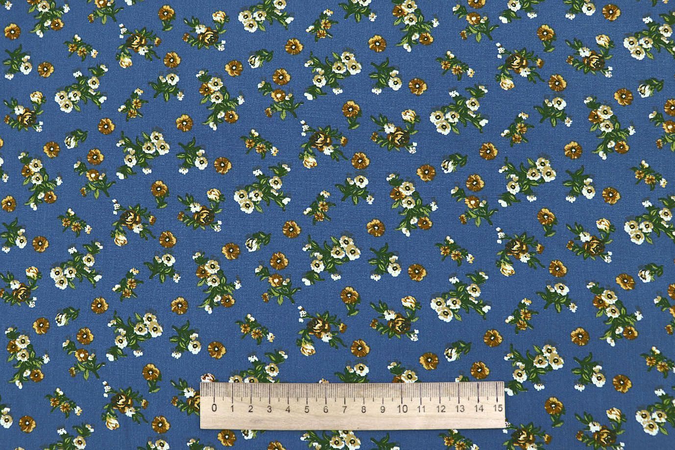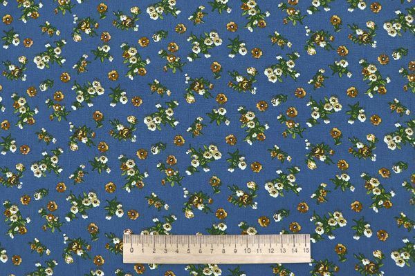 Штапель принт/цветы коричнево-зеленые на синем 4205-PY/D#1/C#1 35 пог/м.