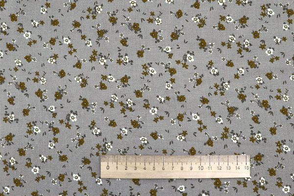 Штапель принт/цветы горчично-зеленые на сером 4205-PY/D#31/C#2