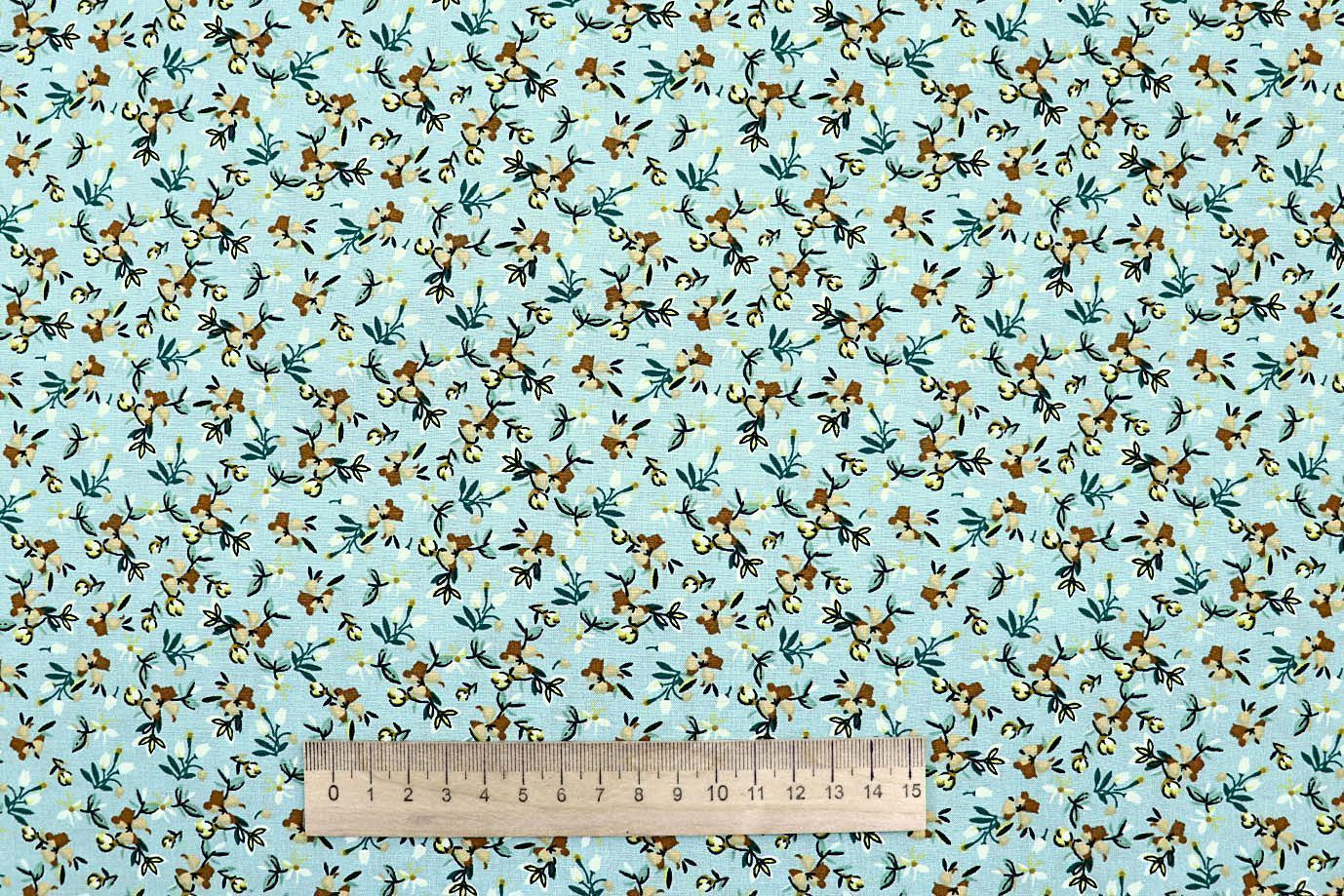 Штапель принт/узор бежевый на бирюзовом 4205-PY/D#100/C#2