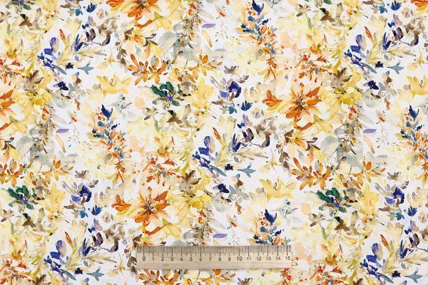 Штапель принт/цветы оранжево-синие на молочном 4205-PY/D#26/C#1