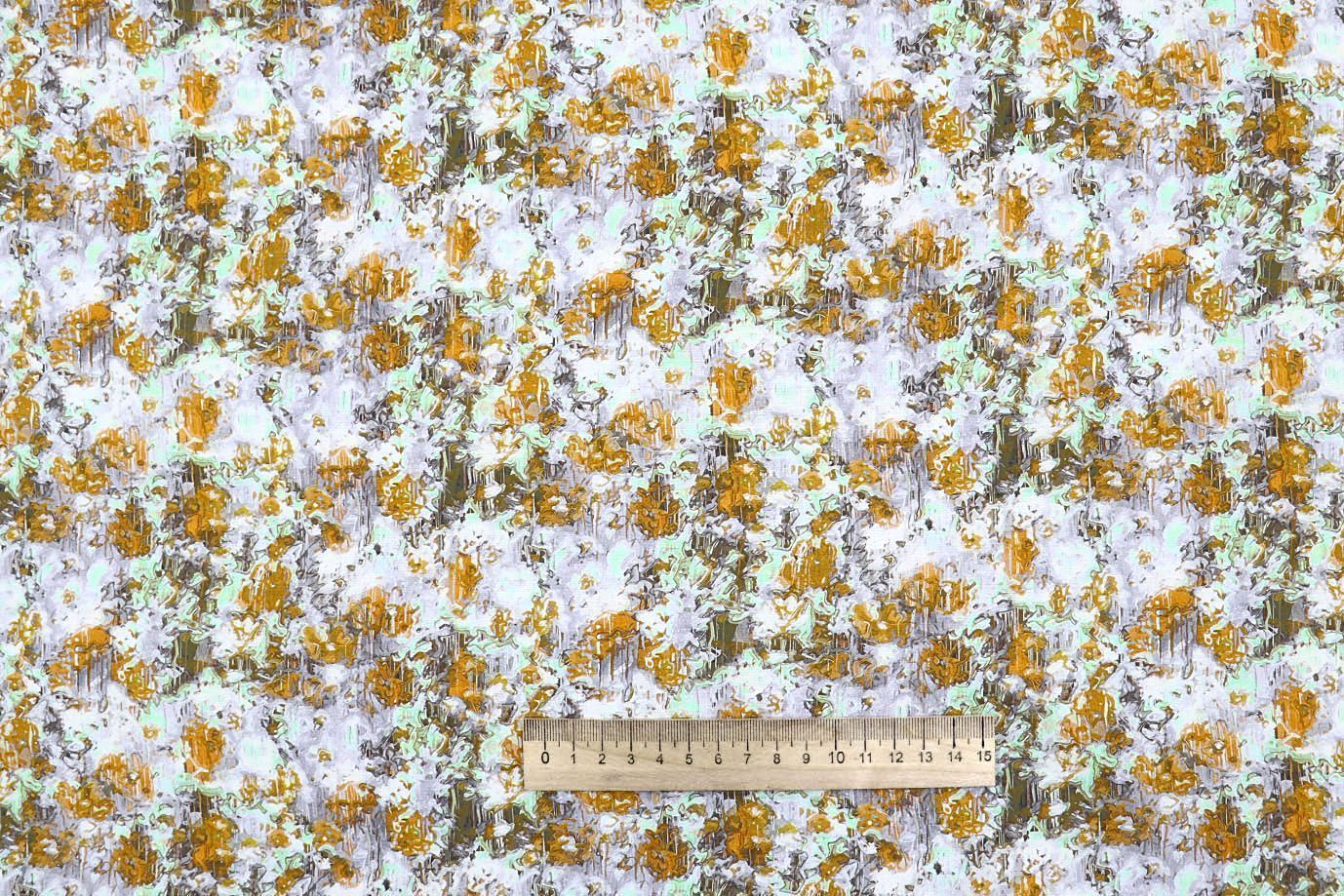 Штапель принт/цветы оранжево-желтые на белом 4205-PY/D#18/C#2