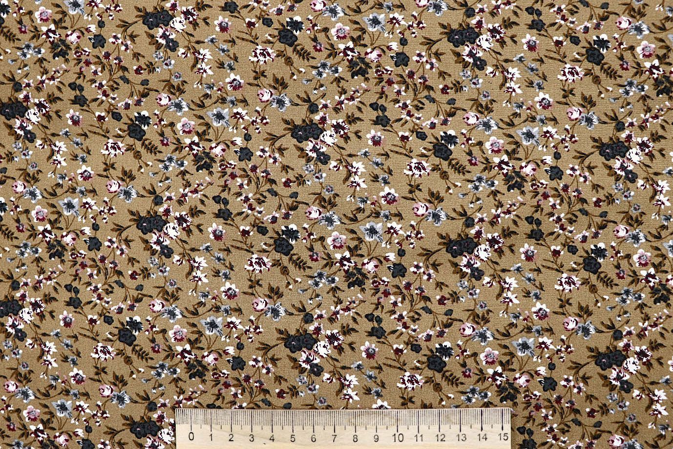 Штапель принт/цветы белые на арахисовом 4203-PY/D#61/C#4
