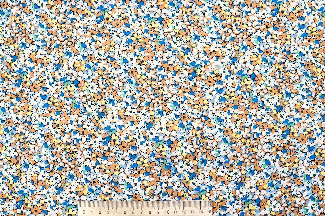 Штапель принт/сине-оранжевый на молочном 4203-PY/D#73/C#1