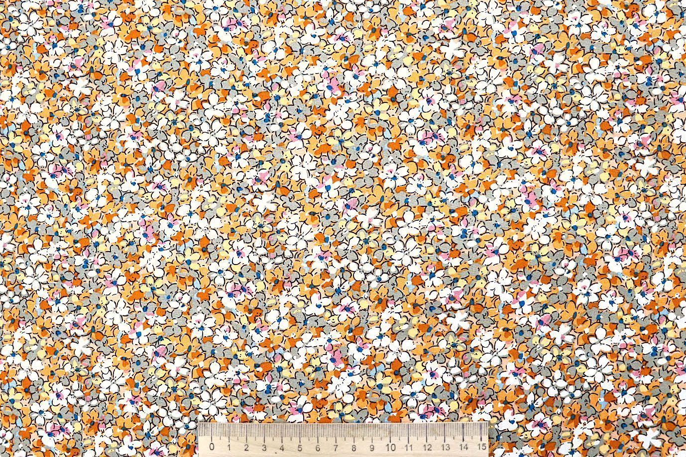 Штапель принт/сине-оранжевый на молочном 4203-PY/D#73/C#1