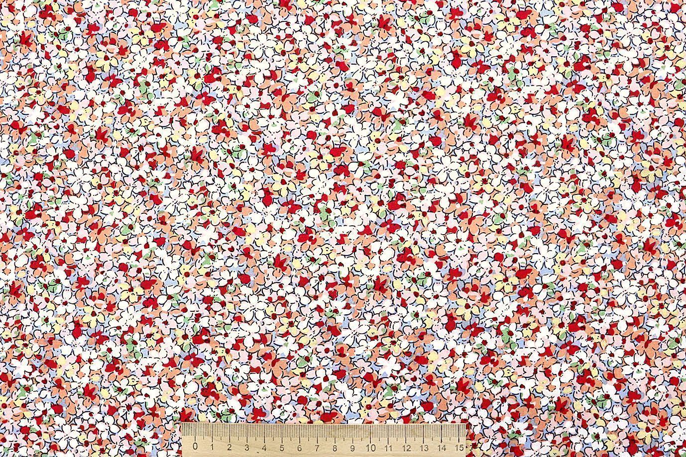 Штапель принт/цветы белые на красном 4203-PY/D#81/C#2