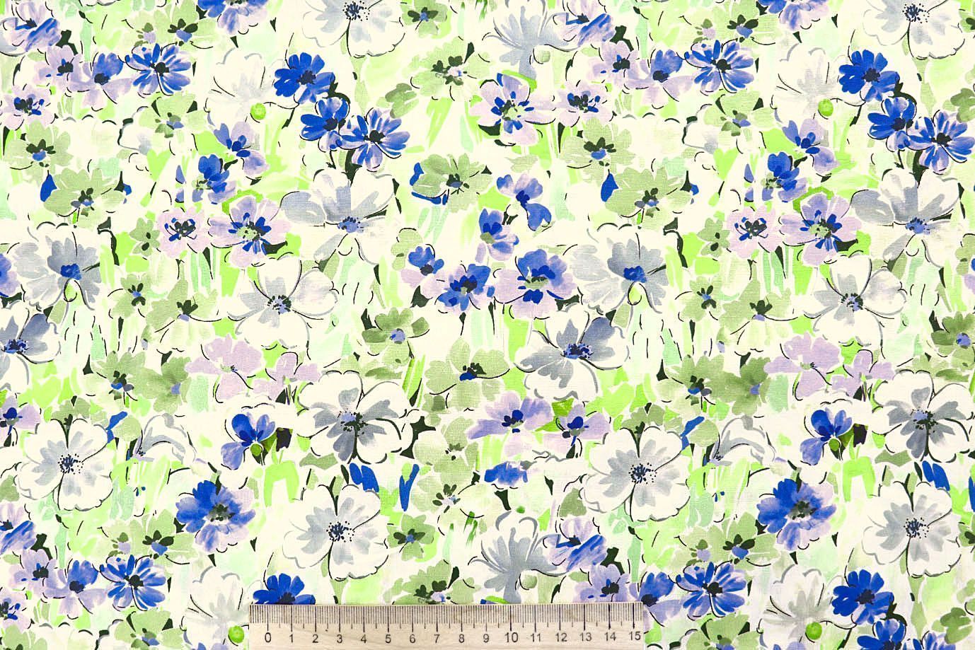 Штапель принт/цветы сине-зеленые на молочном 4203-PY/D#78/C#1 (12473)