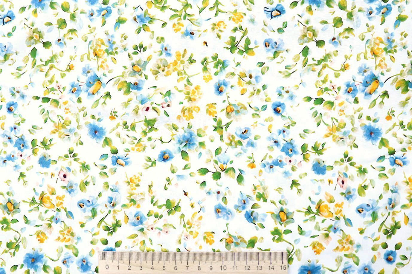 Штапель принт/цветы сине-желтые на молочном 4203-PY/D#28/C#1 33 пог/м.
