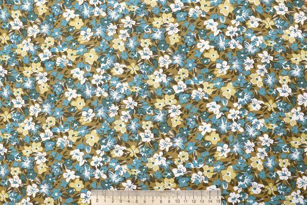 Штапель принт/цветы белые на хакки 4203-PY/D#61/C#3