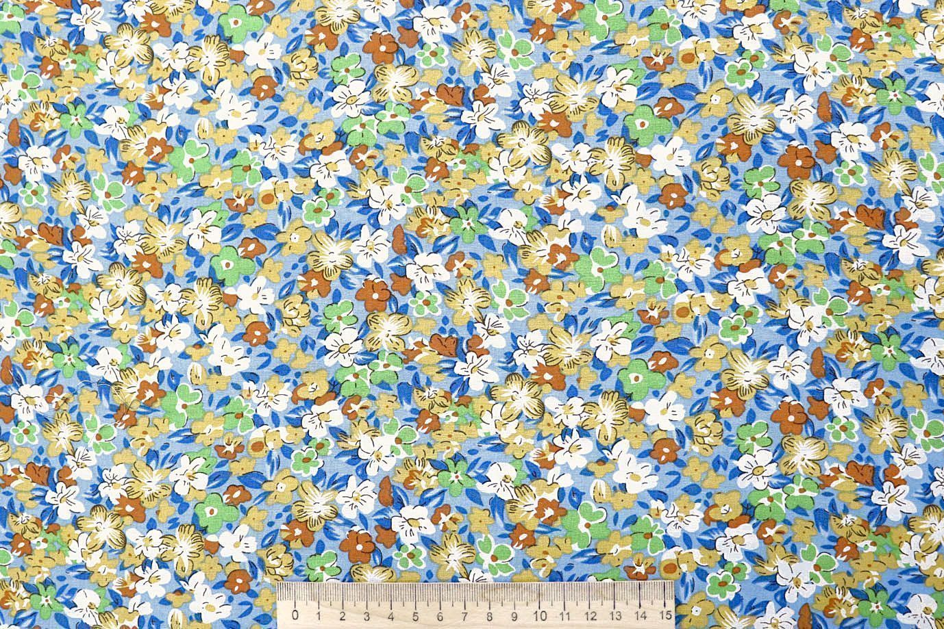 Штапель принт/цветы сине-зеленые на молочном 4203-PY/D#78/C#1 (12473)
