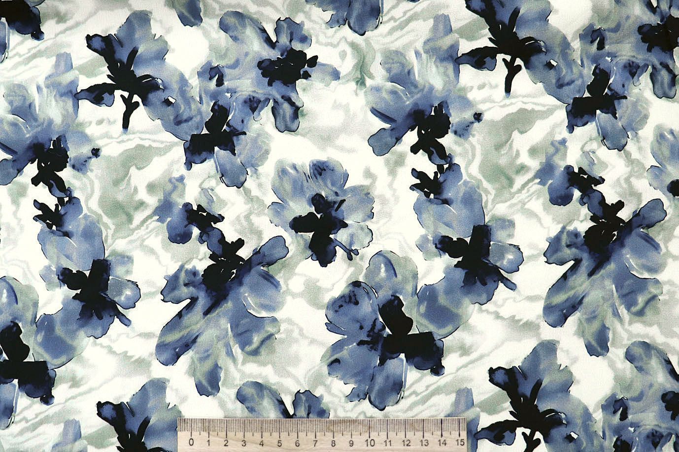 Штапель принт/цветы сине-зеленые на молочном 4203-PY/D#78/C#1 (12473)