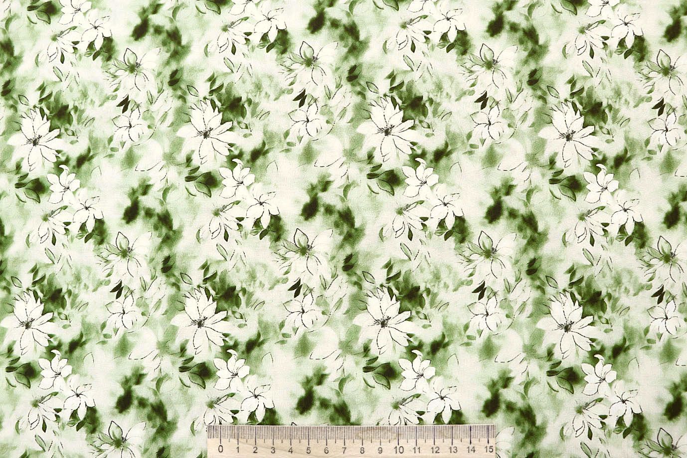 Штапель принт/цветы молочные на зеленом 4203-PY/D#80/C#2
